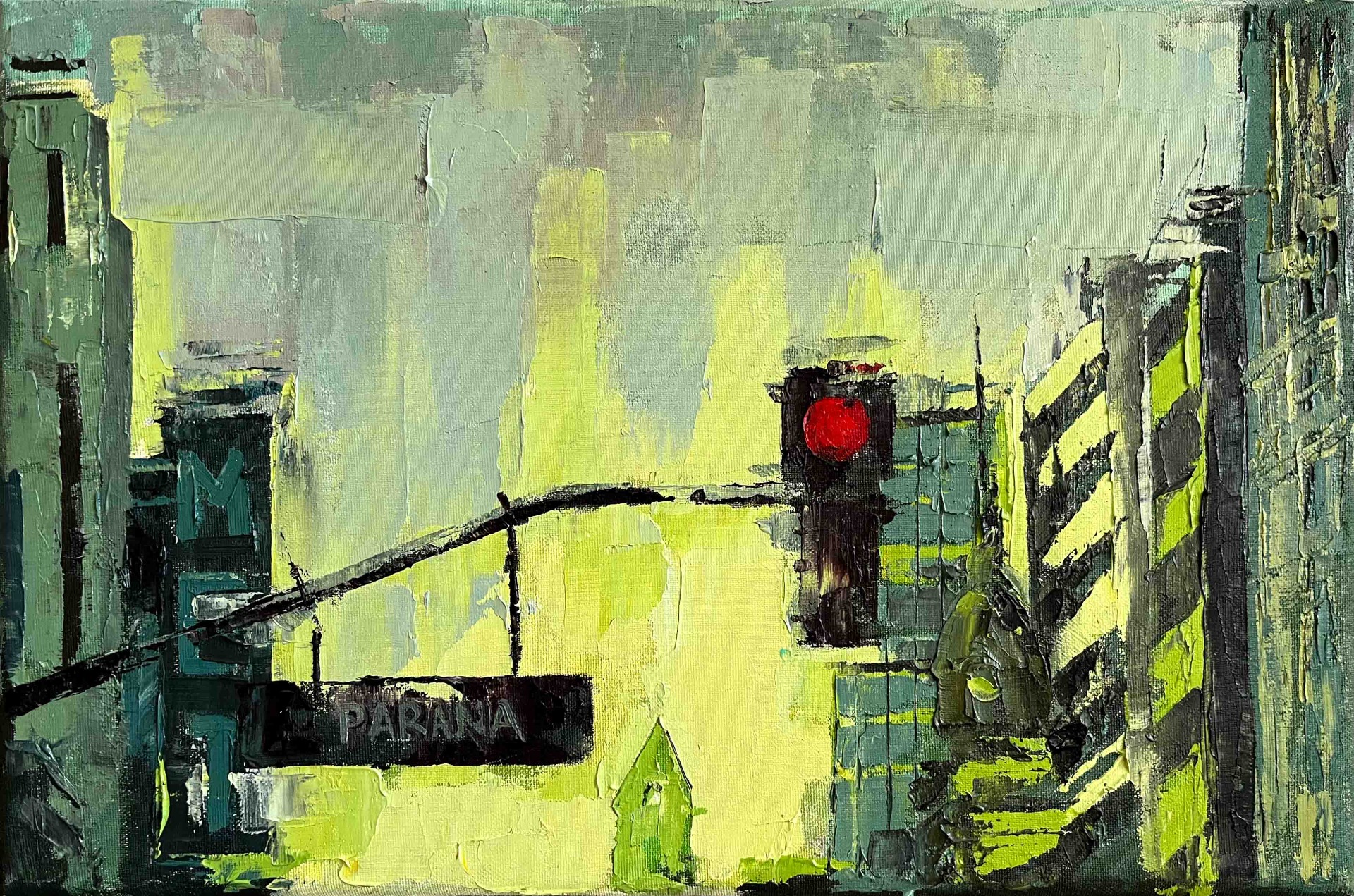 Pintura al óleo aplicado con espátula sobre bastidor entelado.