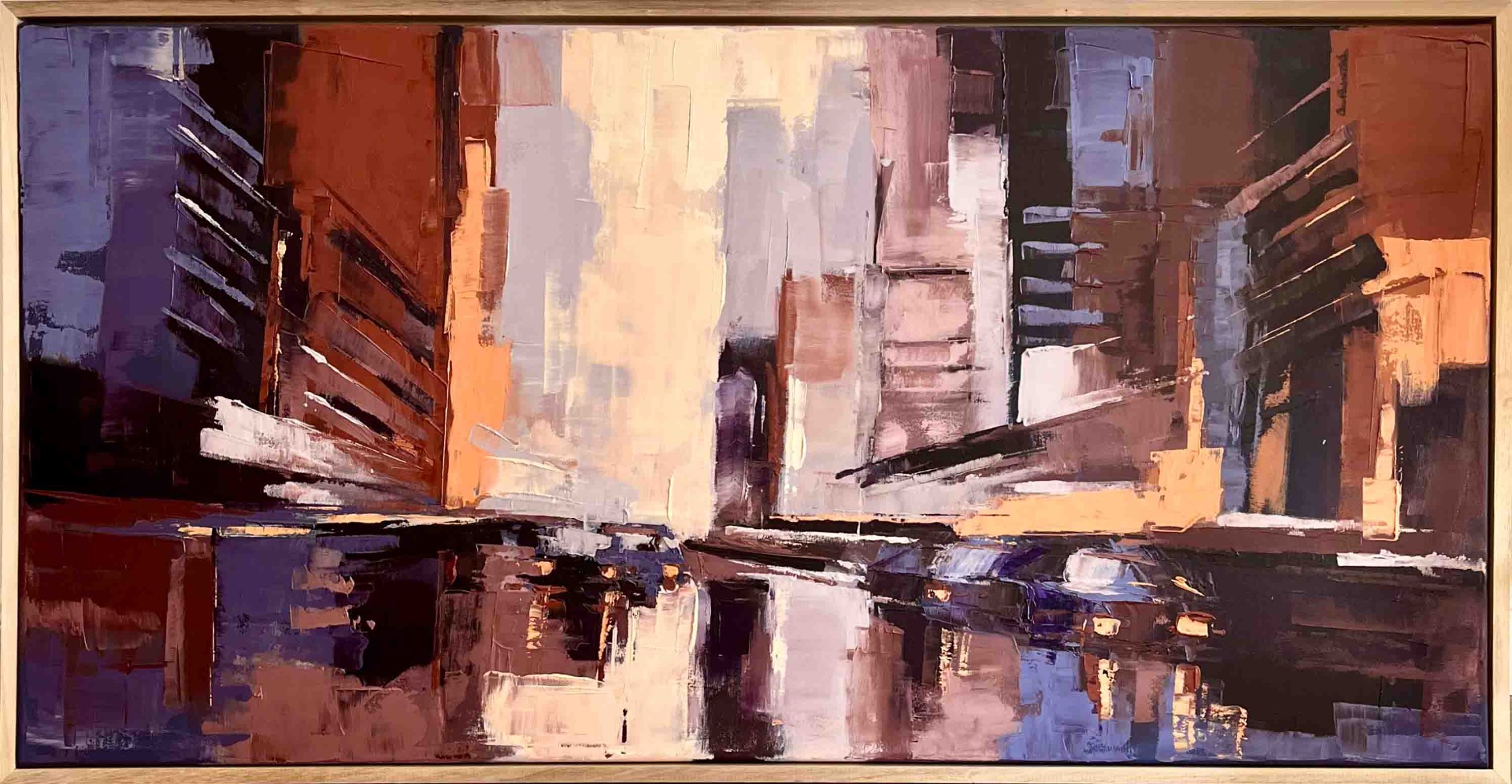 Pintura al óleo aplicado con espátula sobre bastidor entelado.