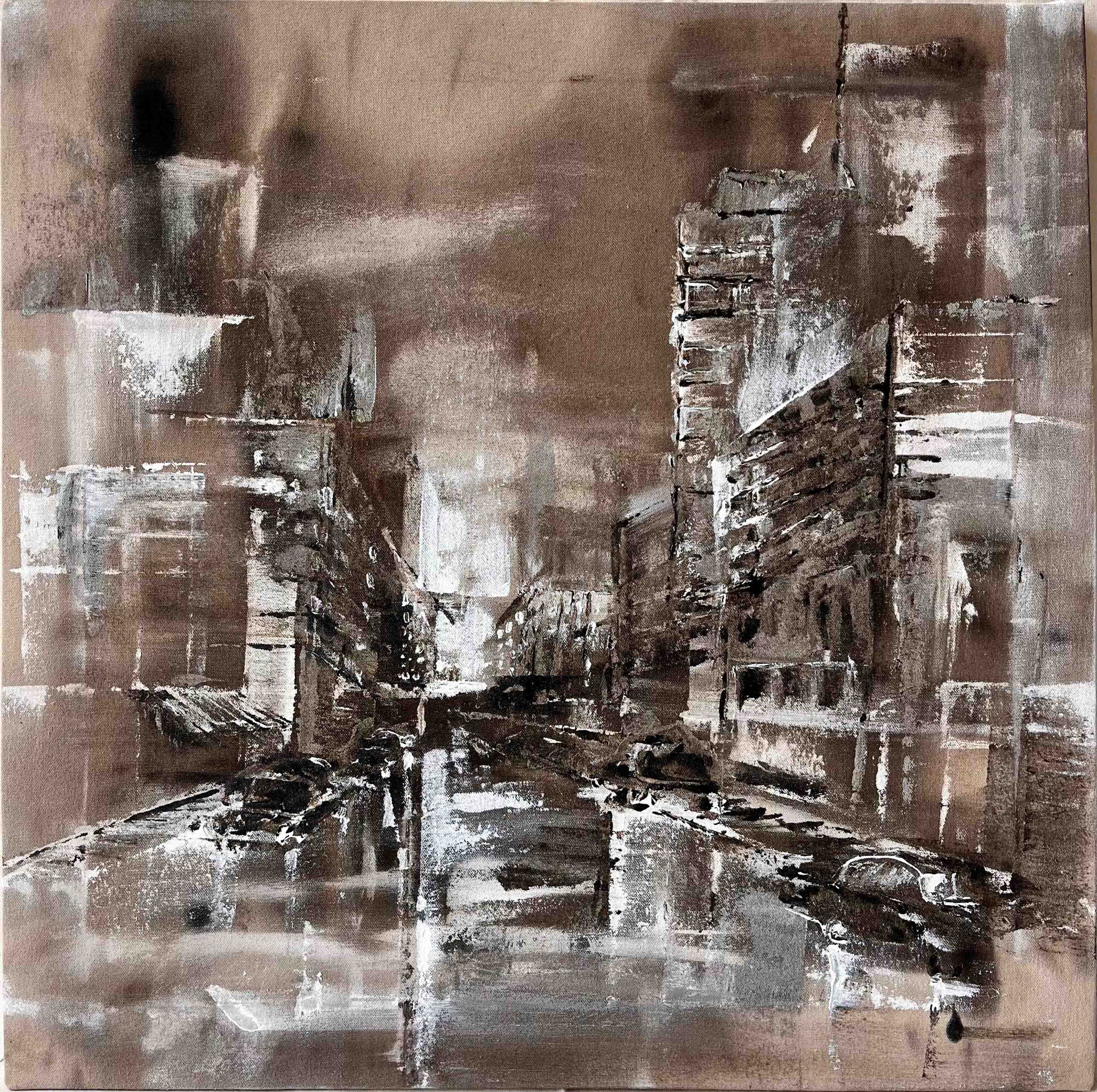 Pintura al óleo y asfáltica aplicado con espátula sobre bastidor entelado.