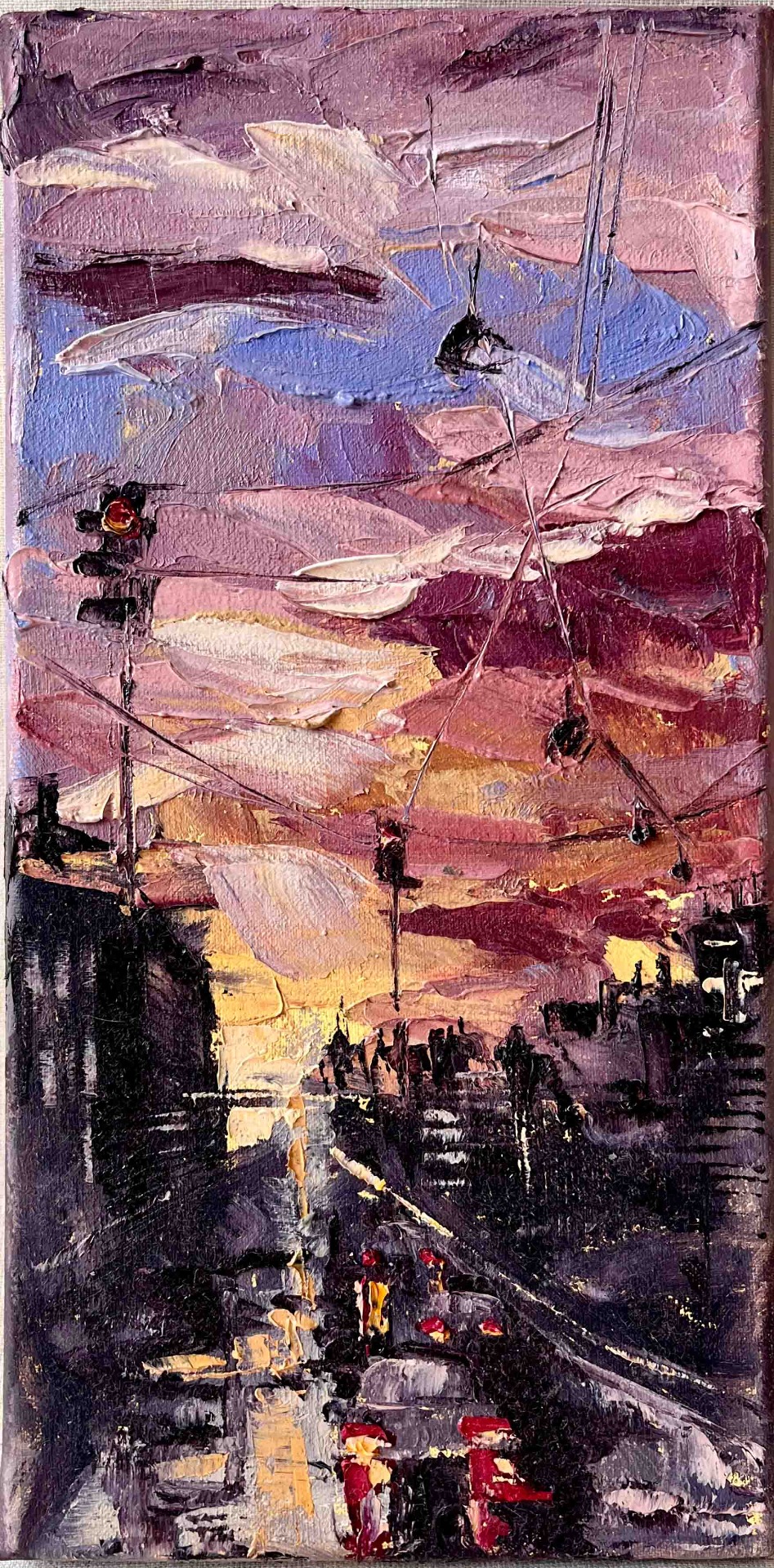 Pintura al óleo aplicado con espátula sobre bastidor entelado.